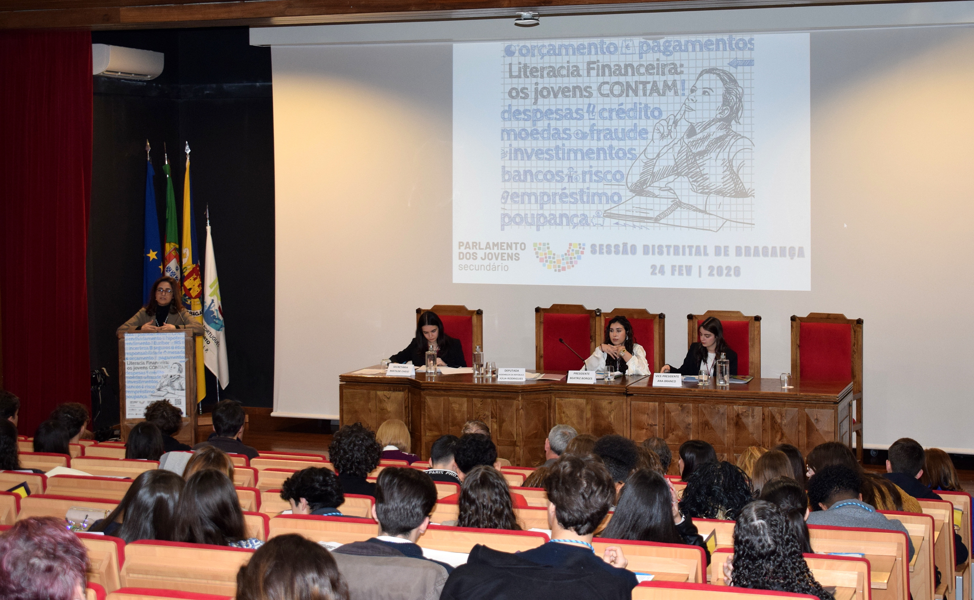 O Auditório Paulo Quintela de Bragança foi palco, no dia 24 de fevereiro, da Sessão Distrital de Bragança do Parlamento dos Jovens (Ensino Secundário), numa iniciativa que contou com o apoio da Câmara Municipal.