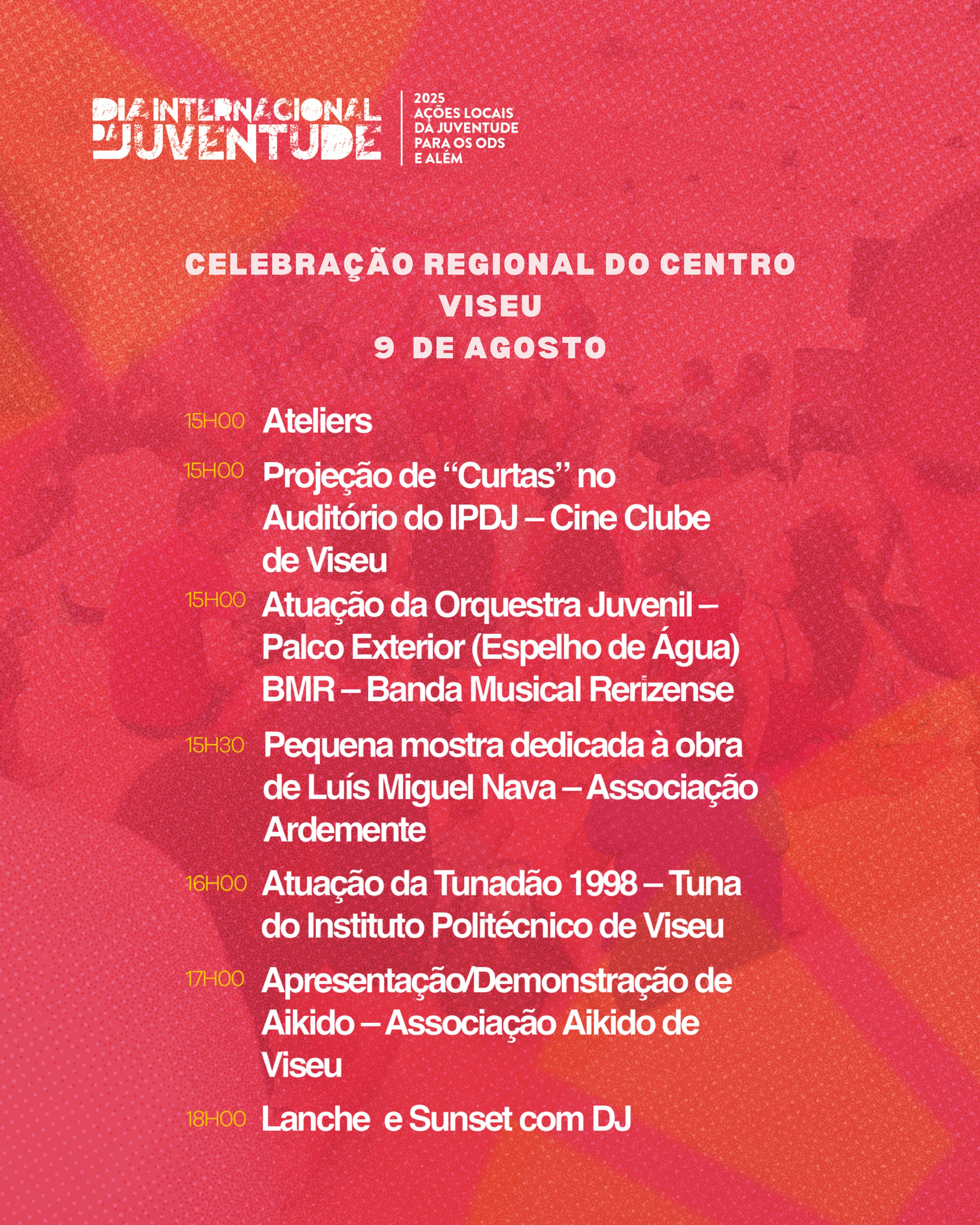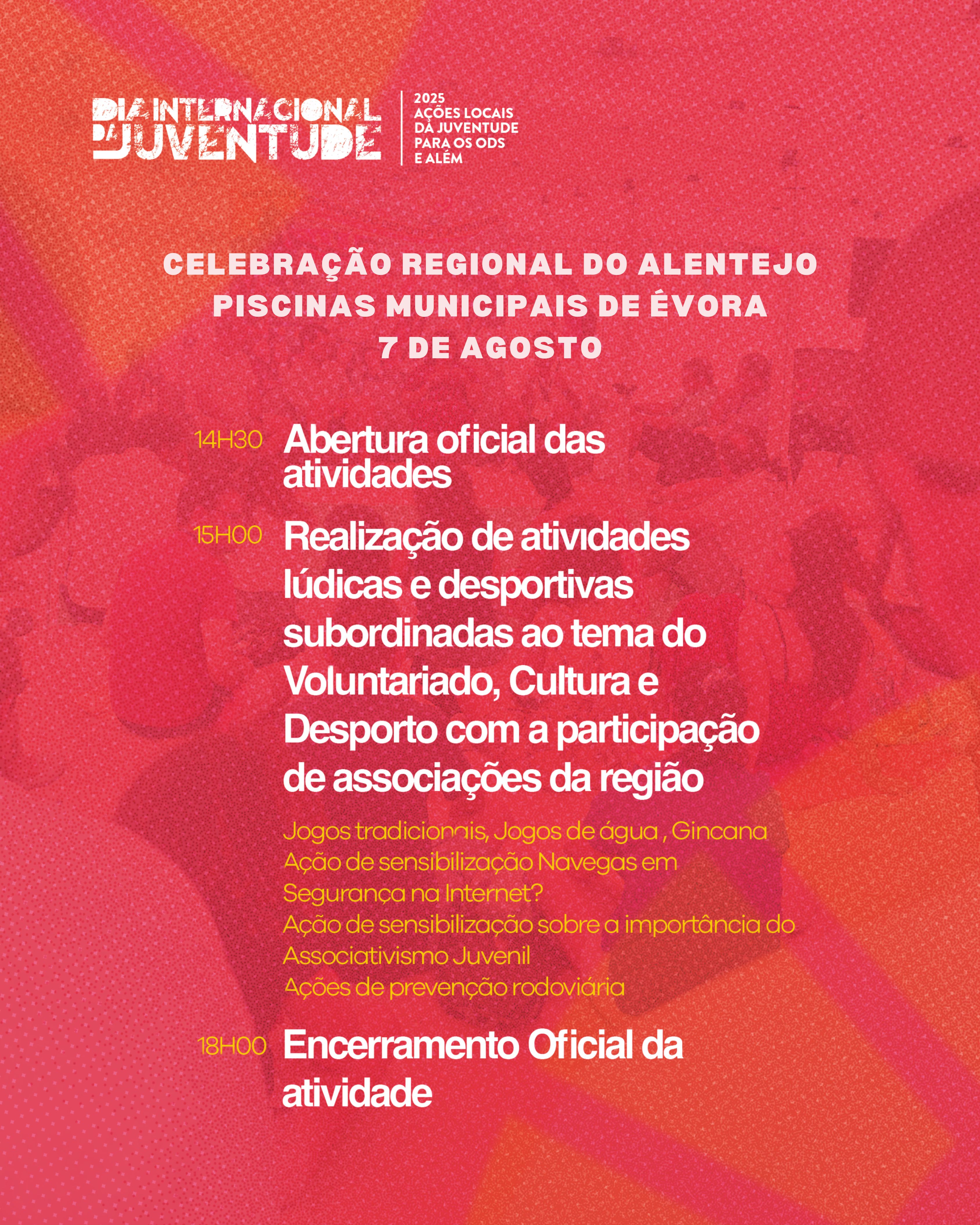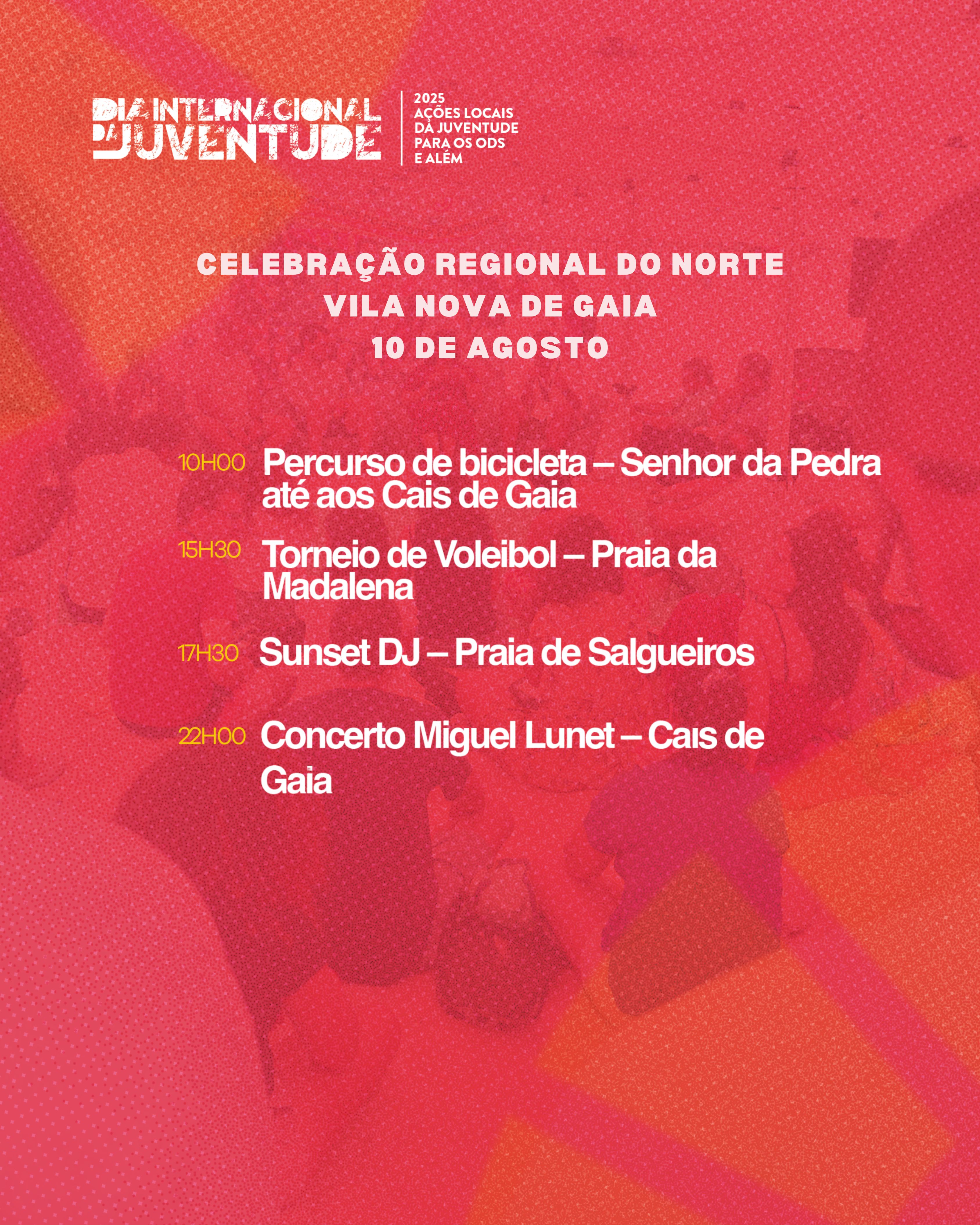 Localmente, as Direções Regionais do IPDJ já estão a celebrar este dia tão relevante para os jovens, conheça os programas regionais do Norte, Centro, Lisboa e Vale do Tejo, Alentejo e Algarve.