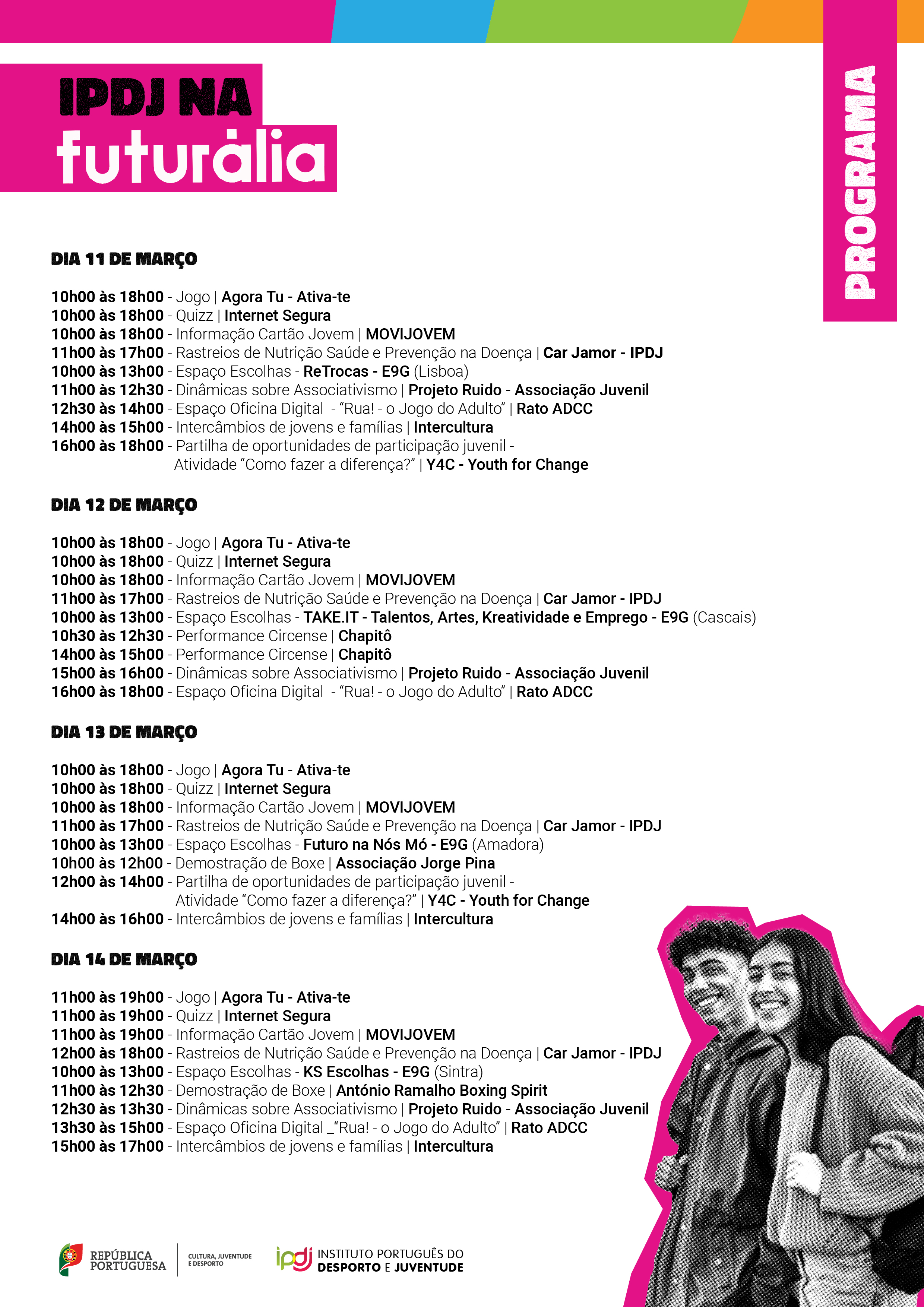 No nosso espaço, os/as jovens podem ainda contar com apresentações e dinâmicas de associações juvenis, demonstrações e aulas de dança; artes performativas; atuações musicais e quizz sobre várias temáticas.
