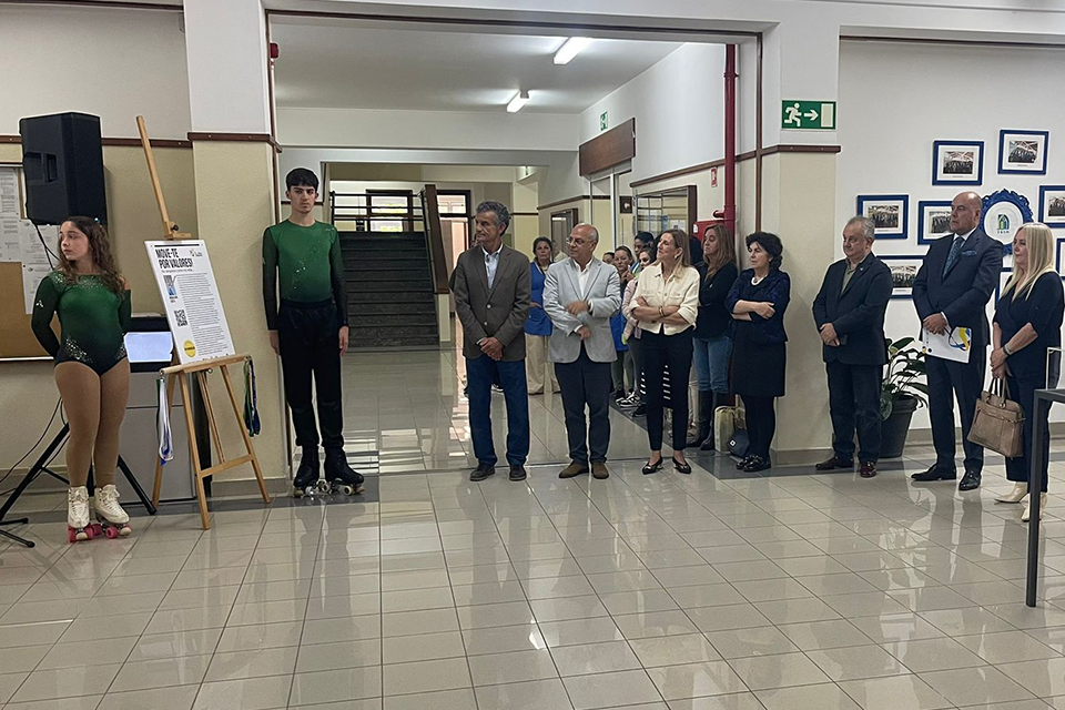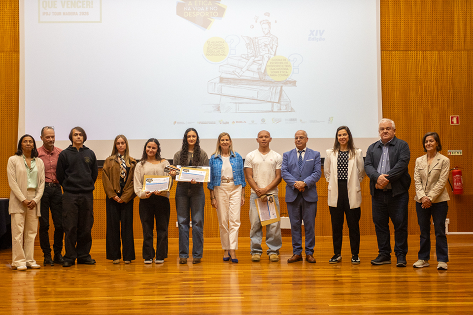 O primeiro dia da IPDJ TOUR Madeira 2026, 21 de abril, ficou marcado pela inauguração da exposição “Move-te por Valores” na Escola Básica e Secundária de Machico e pela homenagem à atleta madeirense Madalena Costa, do Sporting Club Santacruzense que, aos 17 anos, conquistou já uma panóplia meritória de resultados de âmbito regional, nacional e internacional, na modalidade de patinagem artística. Destacam-se a presença da Vogal do Conselho Diretivo do IPDJ, Lídia Praça, do Diretor Regional de Desporto, David Gomes, do Diretor Regional de Educação, João Costa e Silva, da Coordenadora Nacional do Programa Escolas Embaixadoras do Parlamento Europeu, Isabel Baltazar, da Técnica do Gabinete de Coordenação do Plano Nacional de Ética no Desporto (PNED), Esmeralda Gonçalinho, da Chefe de Divisão de Projetos, Formação e Promoção, Catarina Barros, da Direção Regional de Desporto (DRD), da Técnica Superior, Marina Silva, da Direção Regional de Educação da Madeira (DRE), bem como de um dos três recém-empossados Embaixadores do PNED da Região Autónoma da Madeira, a Susana Gomes (Atleta de Natação). A cerimónia presidida por José Maria Dias, Presidente do Conselho Executivo do referido estabelecimento de ensino, contou igualmente com a participação remota da homenageada Madalena Costa, distinguida com o selo “Determinação”, representada na ocasião pelo seu avô. A exposição pedagógica itinerária "Move-te por Valores" encontrar-se-á patente na Escola Básica e Secundária de Machico até 30 de abril. A partir desta data a mostra de painéis de homenagem, que visa destacar os valores subjacentes à ética, ao desporto e à cidadania, passará por diferentes estabelecimentos de ensino, que podem ser consultados aqui.
